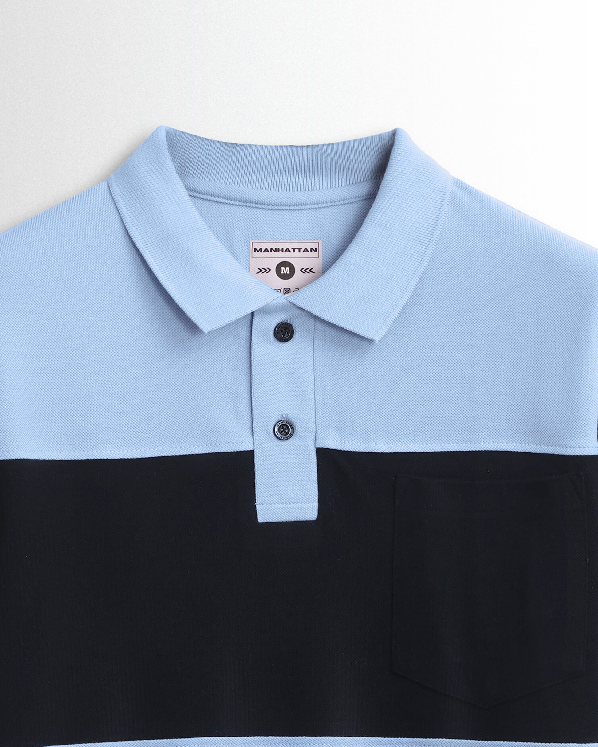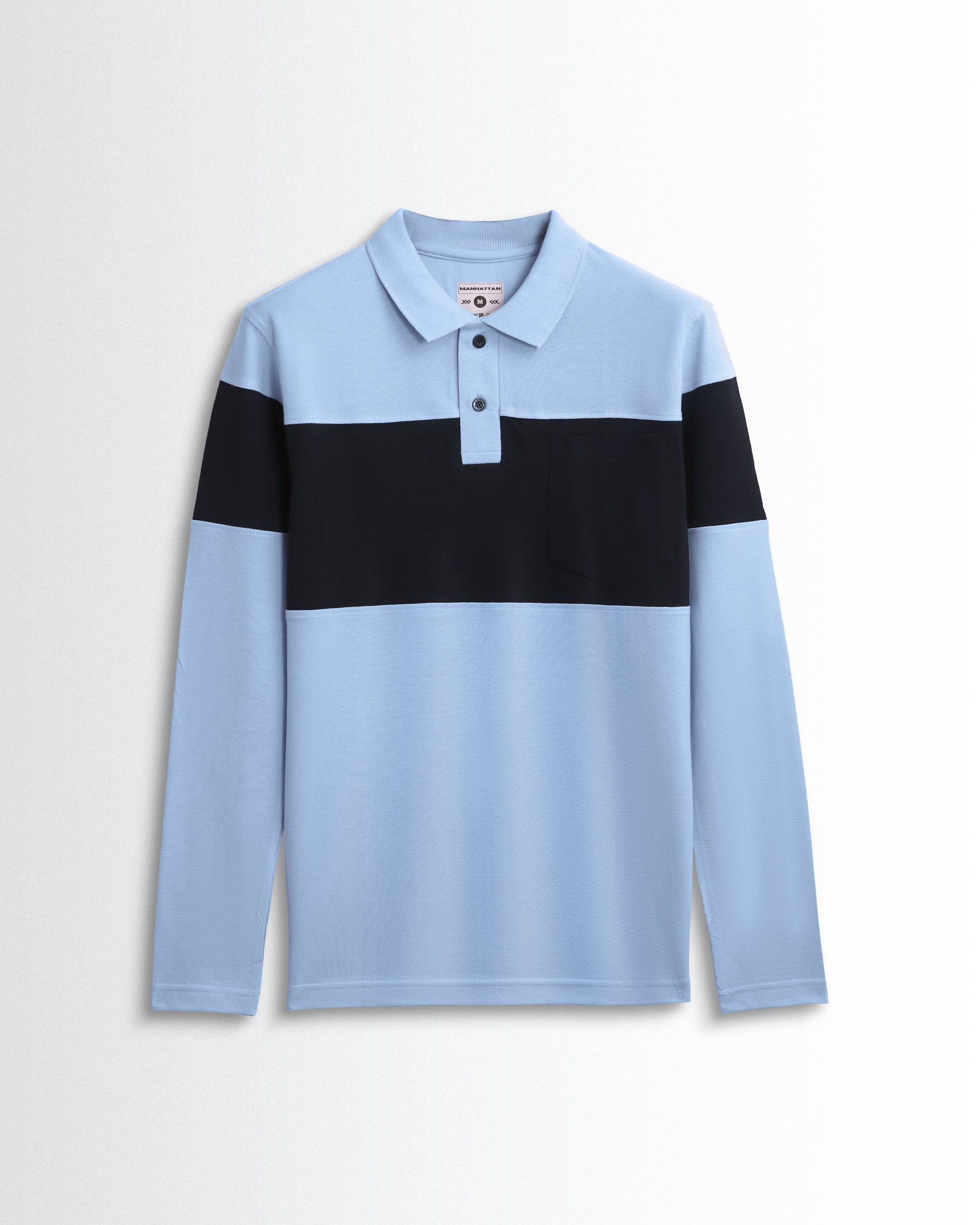 Cotton Polo Full Sleeve Pocket (Sky Blue/Black) Cut & Sew
