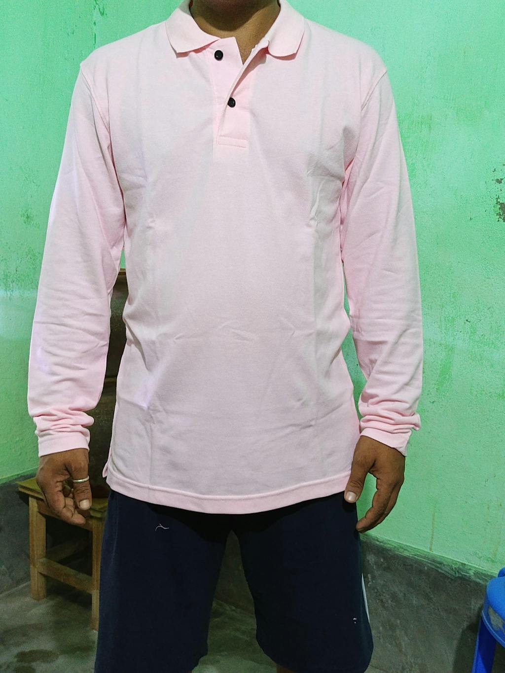 Cotton Polo Full Sleeve Unisex Light Pink Without Pocket