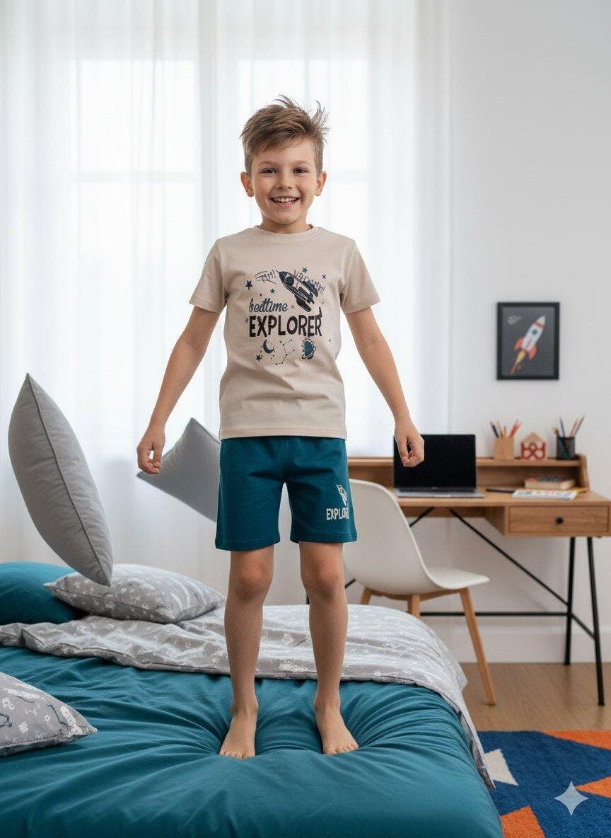 Kids Boys Set Beige/Teal Blue
