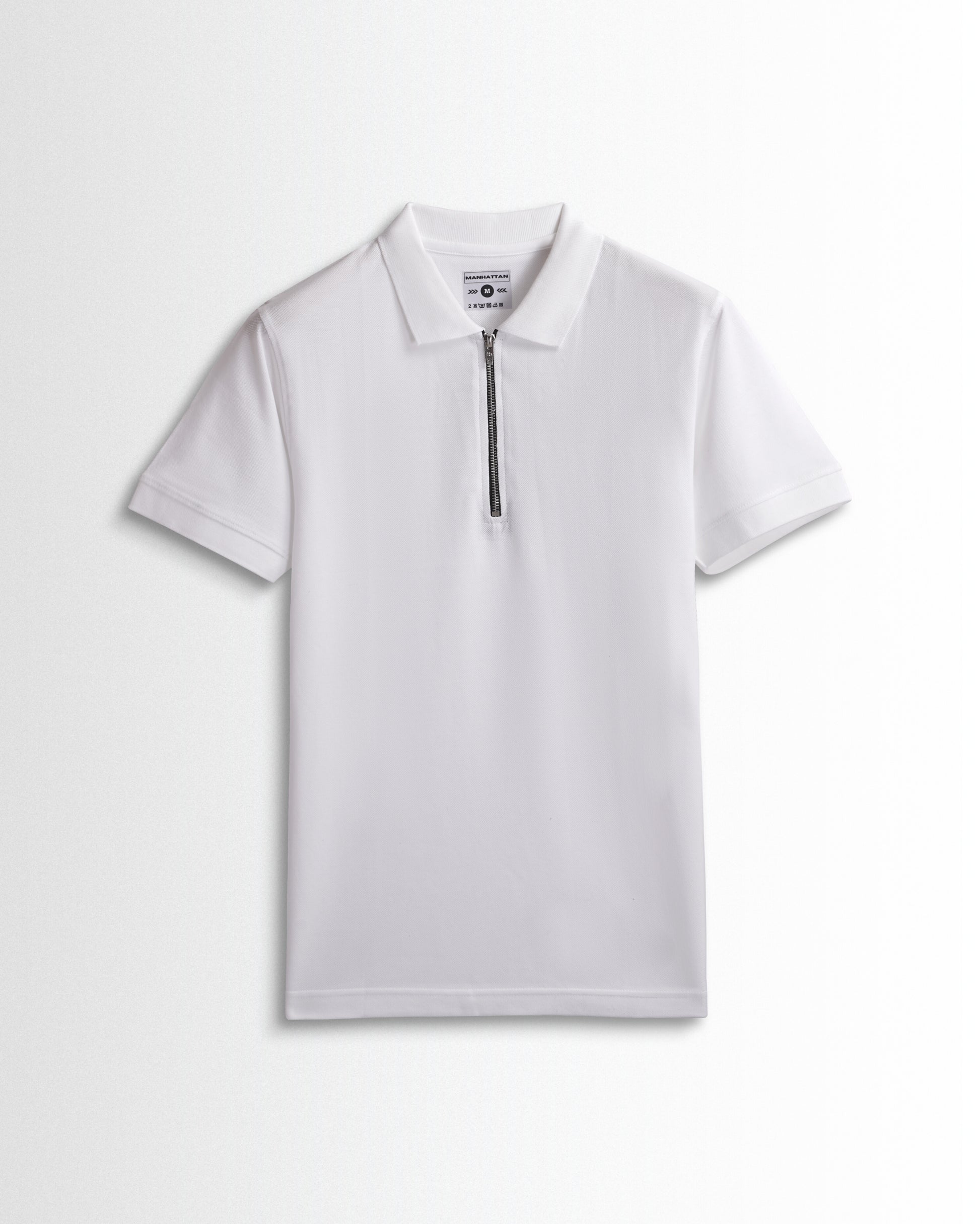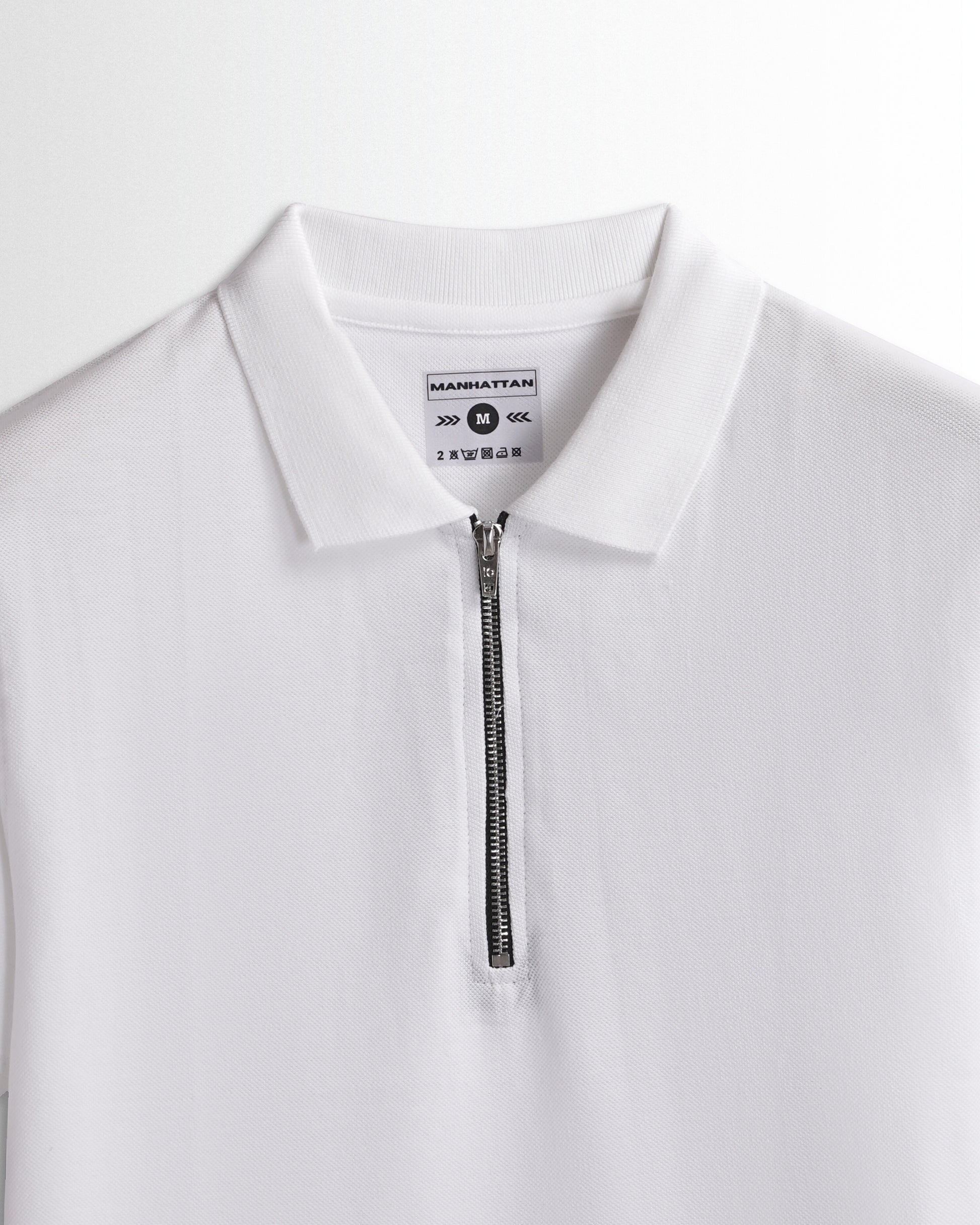 Polo Silver Zipper White T Shirts (Poly Cotton)