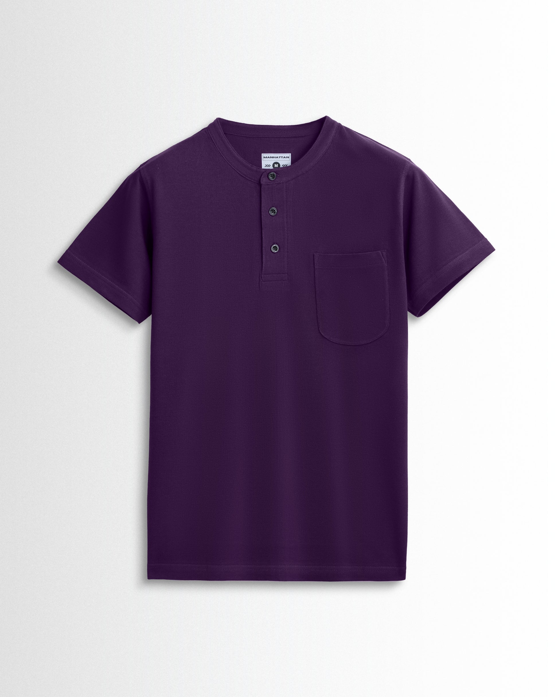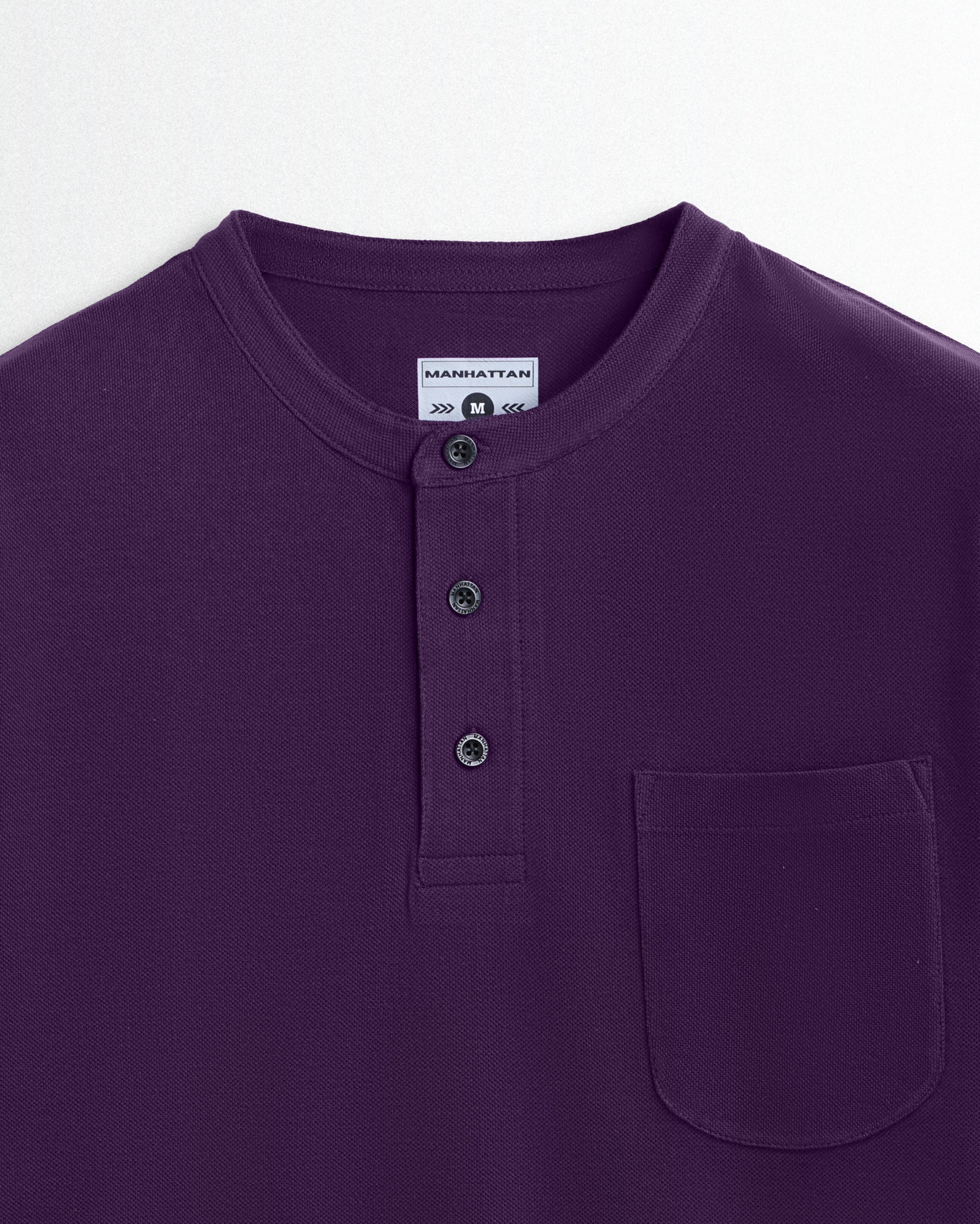 Pure Cotton Henley Pocket T shirts (Purple)