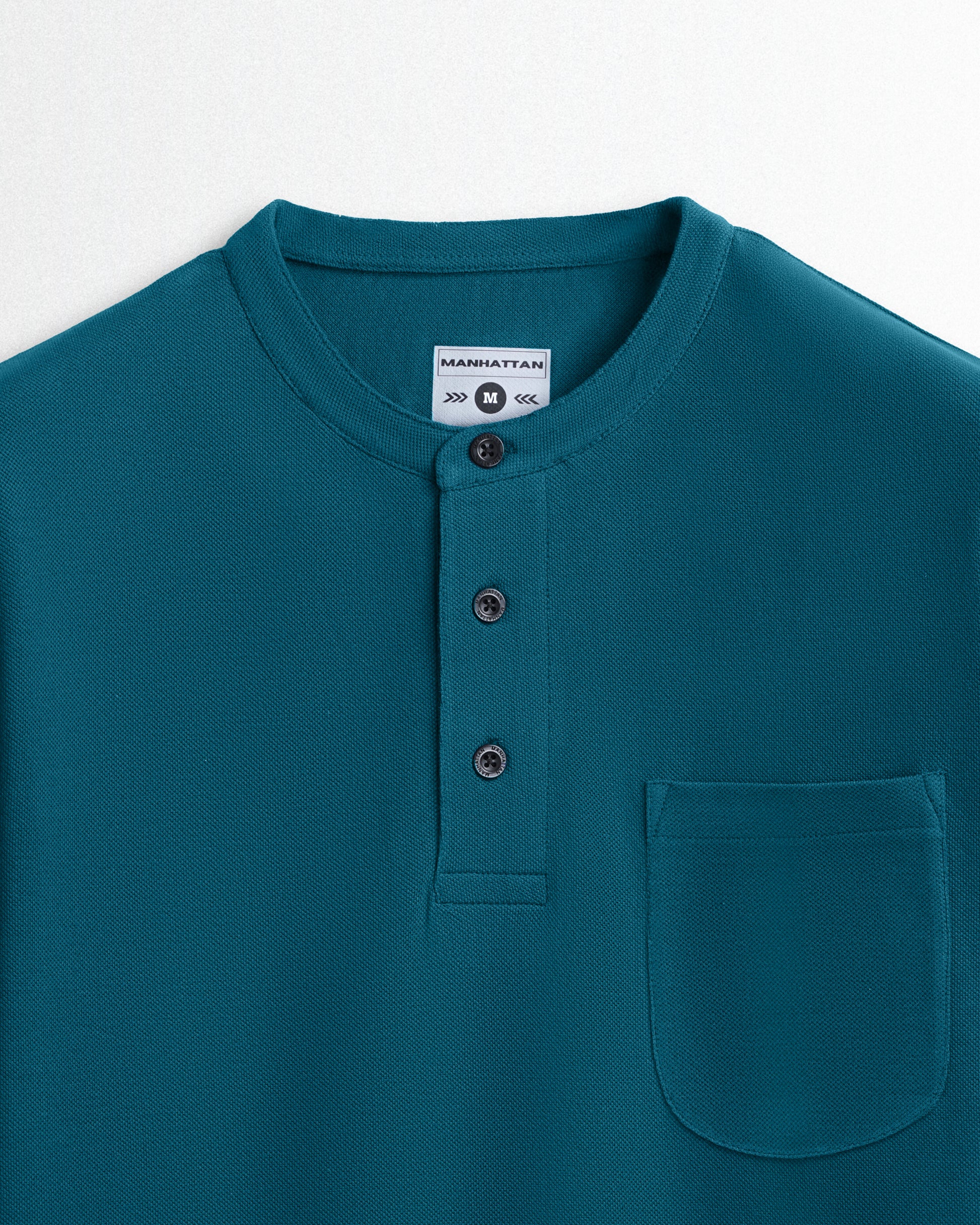 Pure Cotton Henley Pocket T shirts (Teal Green)