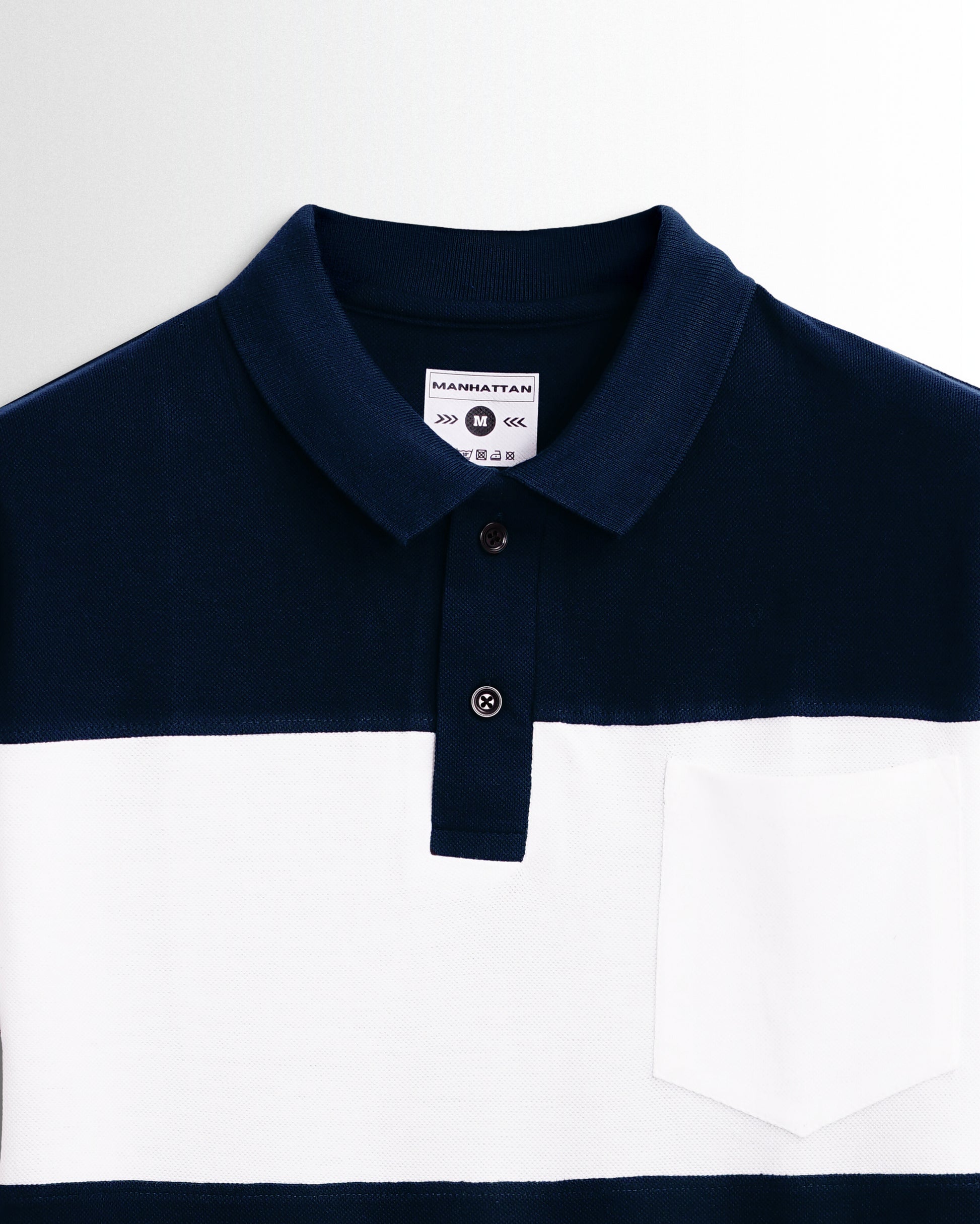 Pure Cotton Polo Pocket T Shirts (Navy/White Combo B) Cut & Sew