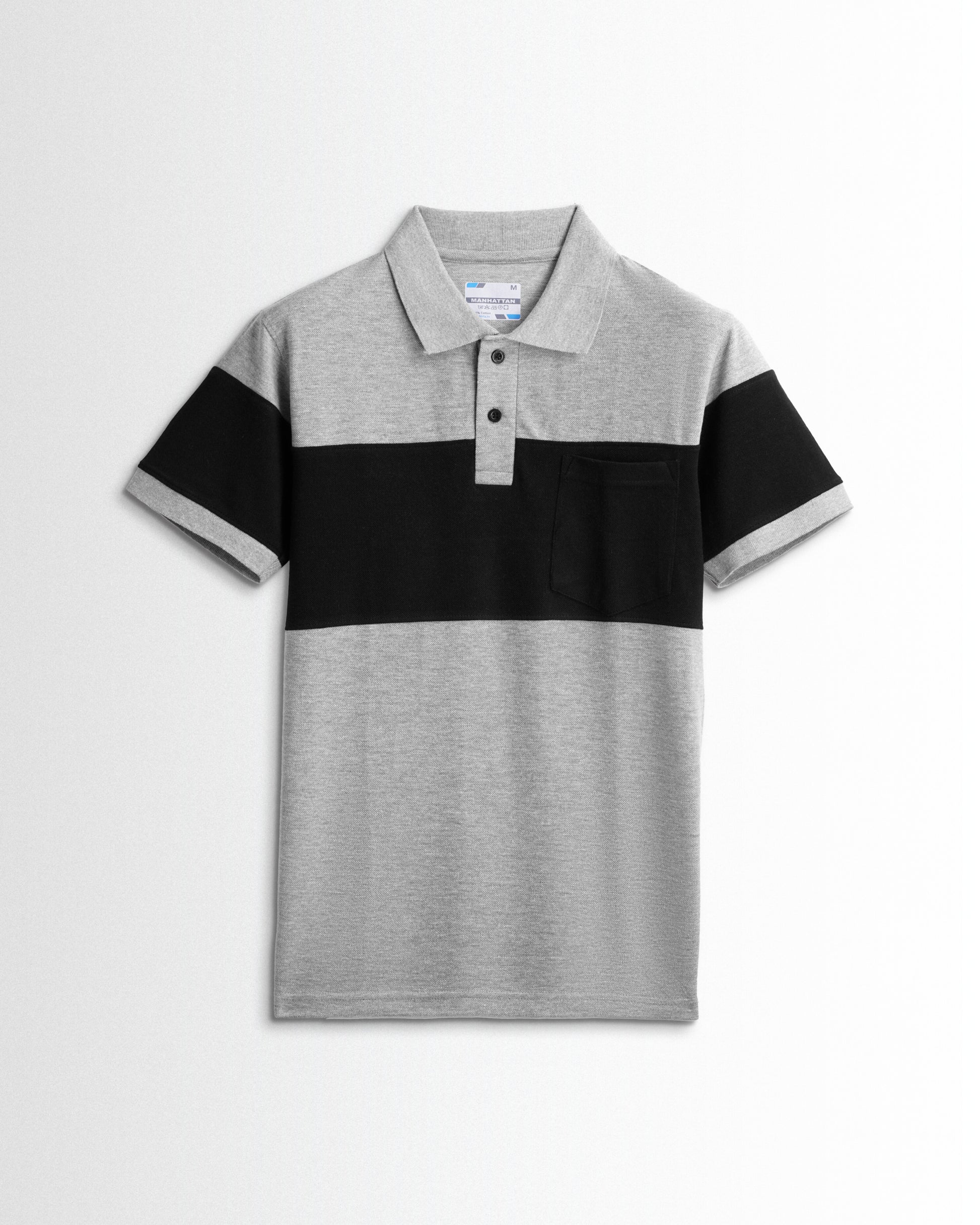 Rich in Cotton Polo Pocket T shirts (Silver Grey/Black) Cut & Sew
