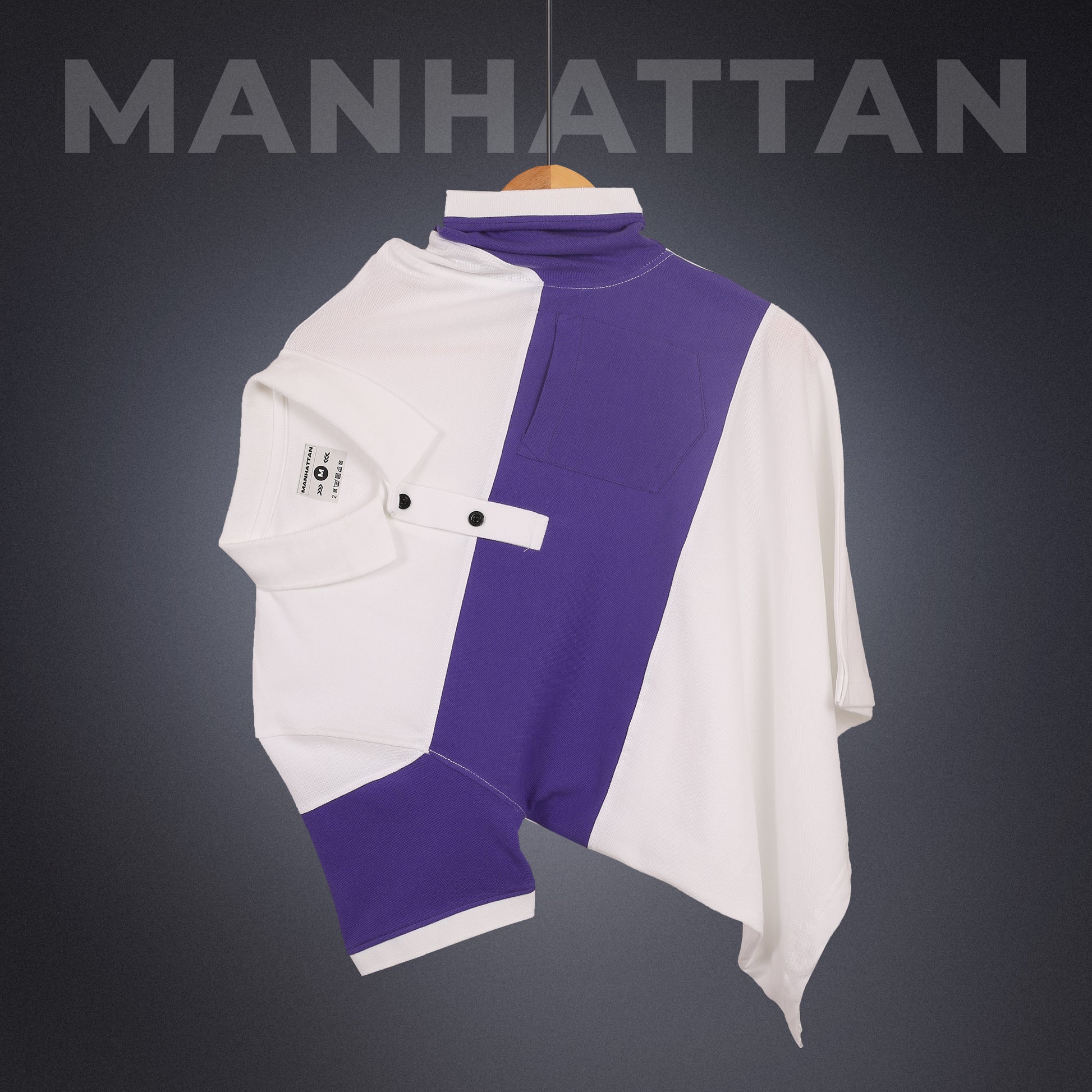 Pure Cotton Polo Pocket T shirts (White/Blue) Cut & Sew