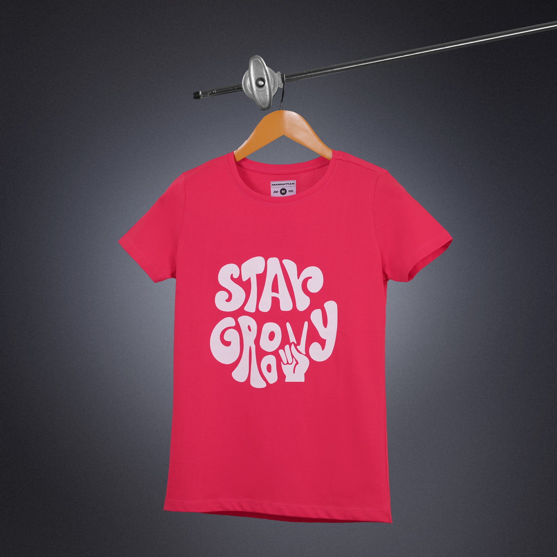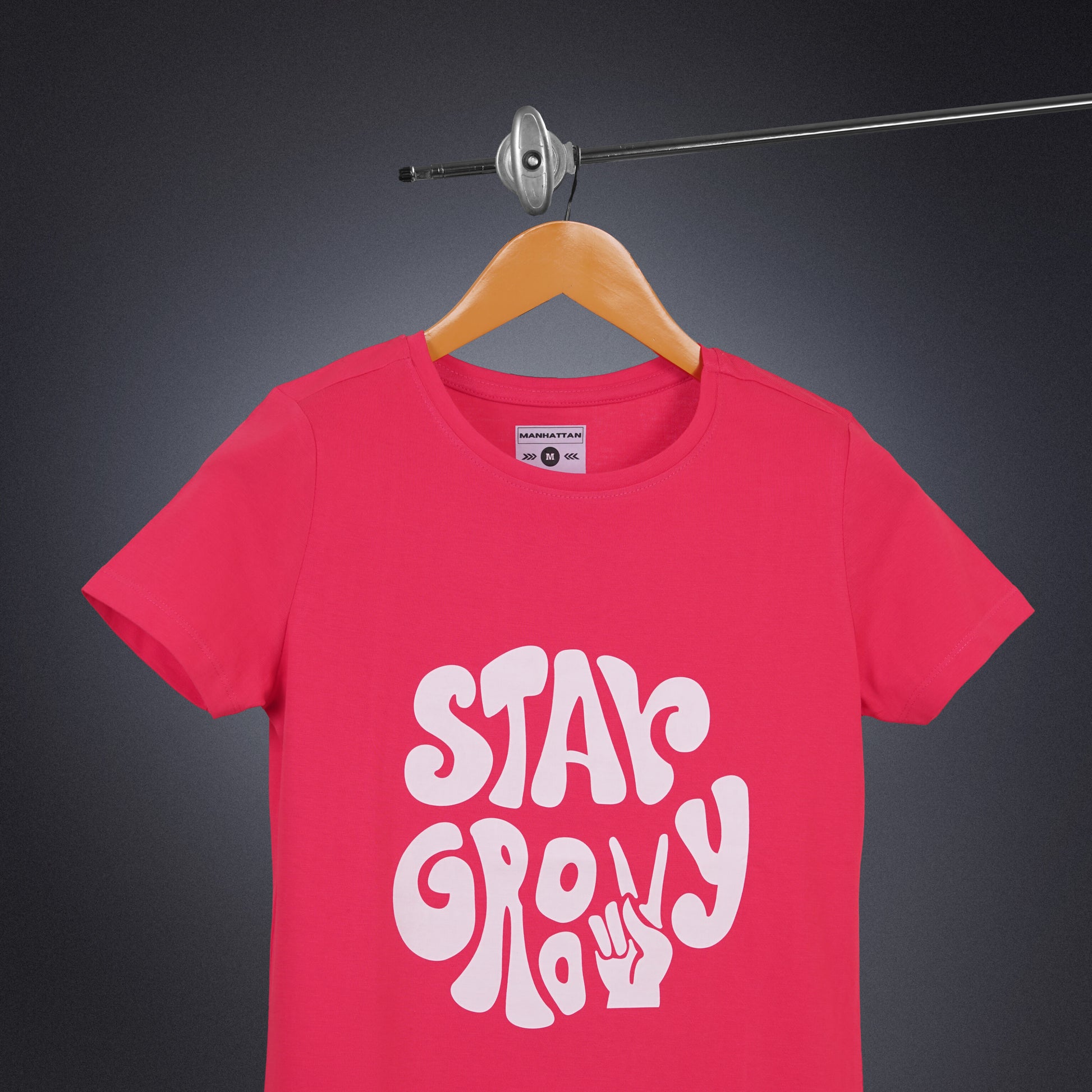 Womens Round Neck Regular Fit Dark Pink T Shirts