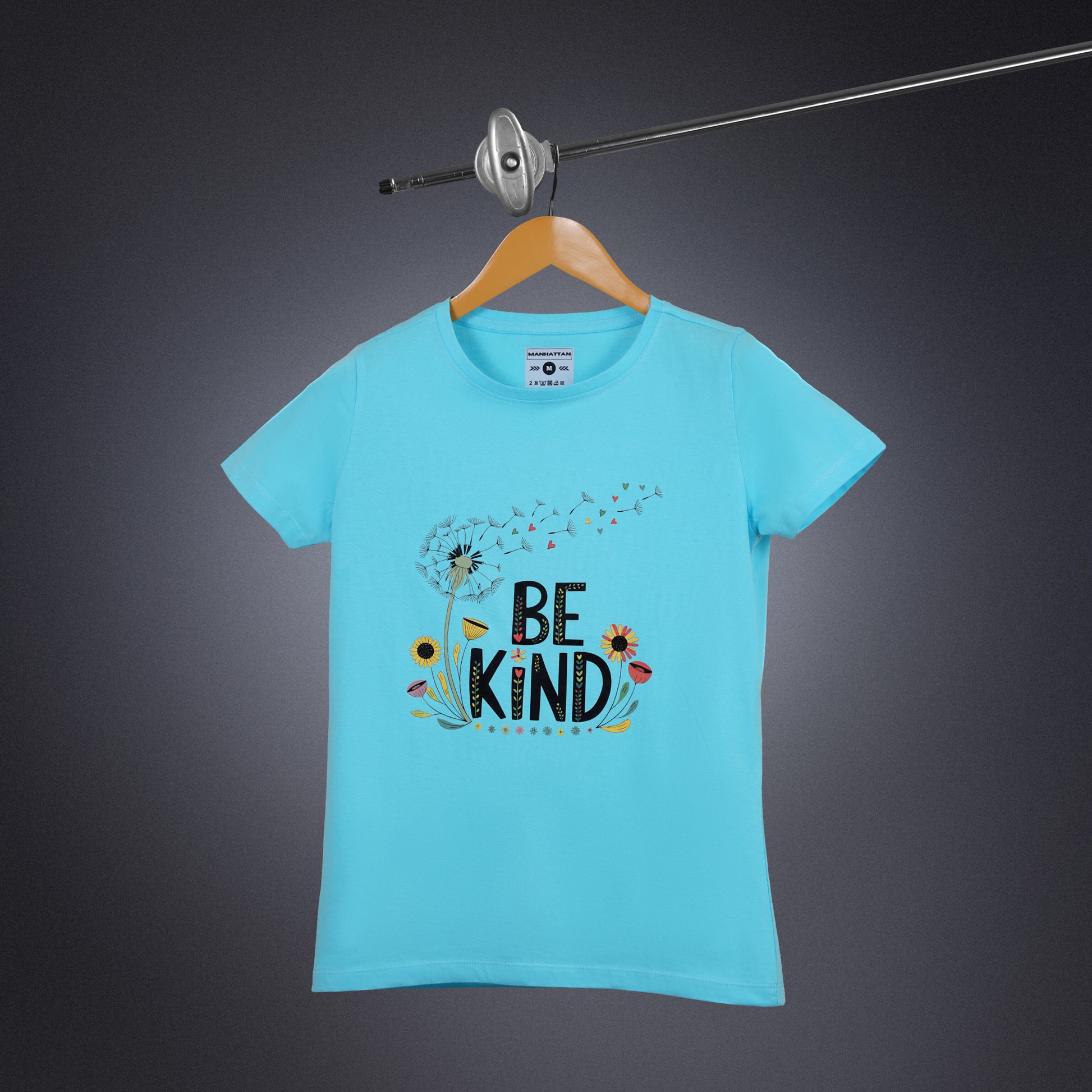 Womens Round Neck Regular Fit Sky Blue T Shirts